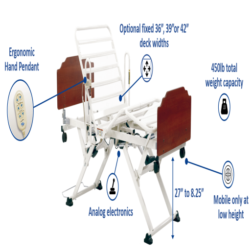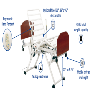 • Dual Pendant Connections - Pendant connects to either side of the bed, providing customized conveniece for the user. Pendant cords are attached to the frame and will not interfere with lifts or tables