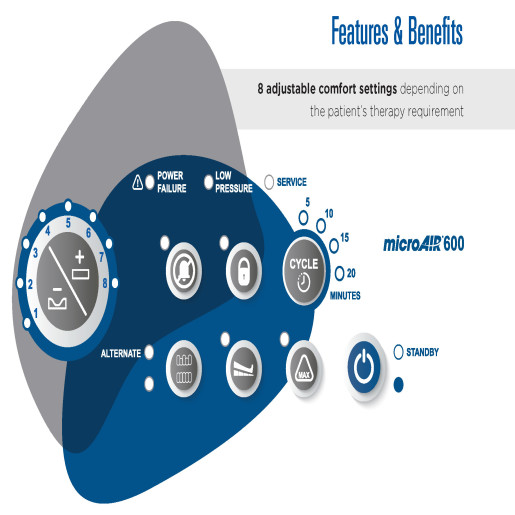 • 8 Adjustable comfort settings depending on the patient's therapy requirement