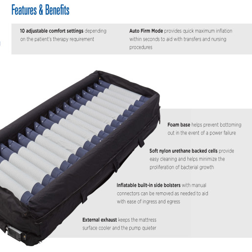 • Auto Firm Mode provides quick maximum inflation within seconds to aid with transfers and nursing procedures